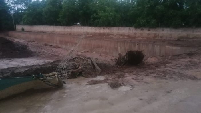 Aydoğan Mahallesi'ndeki dere, sel sularıyla taşınca çok sayıda ekili alana zarar verdi. Öte yandan, Ergin Mahallesi'ndeki iki köprü de sel sularıyla yıkıldı.