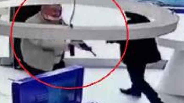 Bu sırada müşteri olarak içeride bulunan, Altındağ Emniyet Müdürlüğü Suç Önleme ve Araştırma Büro Amirliği'nde görevli polis memuru E.A., T.T.'ye müdahale ederek elindeki tüfeği alıp, etkisiz hale getirdi.