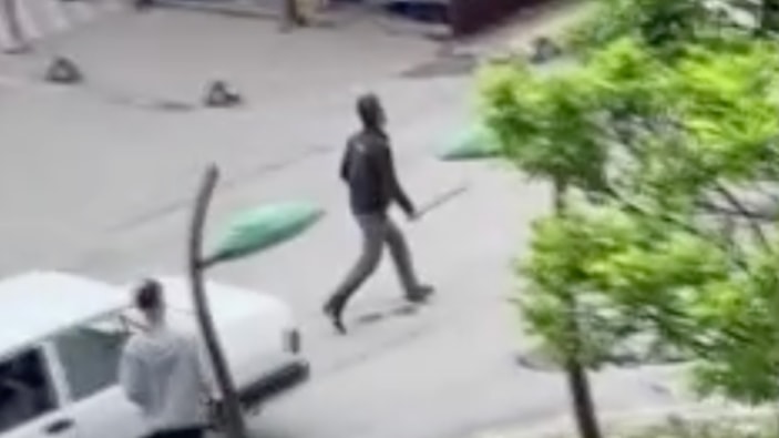 Olayın ardından bir kişi elinde döner bıçağı ile etrafa tehditler savurmaya başladı.