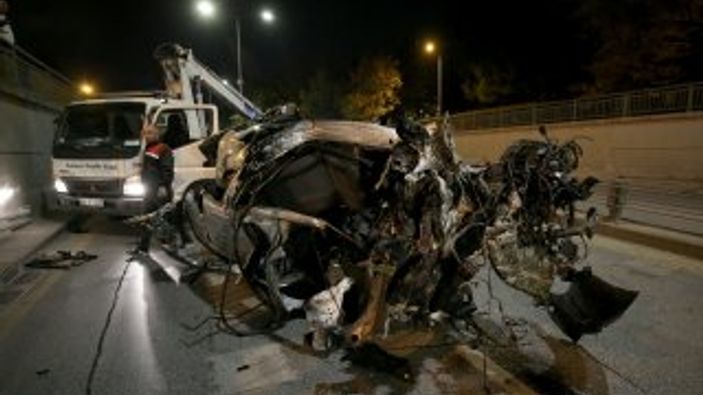 Ankara'nın Çankaya ilçesi İsmet İnönü Bulvarı'nda Kızılay yönüne seyreden otomobil, alt geçit yol ayrımında bulunan demir korkuluklara çarparak alt geçide savruldu.