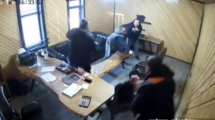 Bu sırada fabrika sahibi koltuğu eline alıp kalkan gibi kullanarak odadan çıktı. M.O.A., eşyaları dağıtıp, pencere camlarını kırarak, fabrikadan ayrıldı.