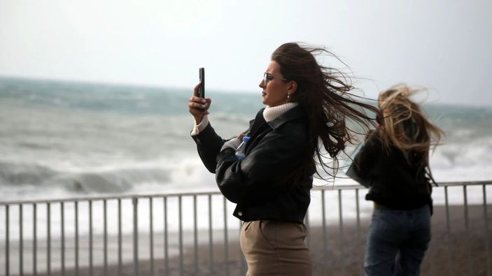 Sahil bandında skutere binen ve rüzgarla devrilip düşen çocuğu annesi kaldırdı. Sahildeki işletmelerde, dün yapılan uyarının ardından olumsuzluk yaşanmaması adına önlem alındığı görüldü. Bazı uçak seferleri, kuvvetli yağış ve fırtına nedeniyle ertelendi.