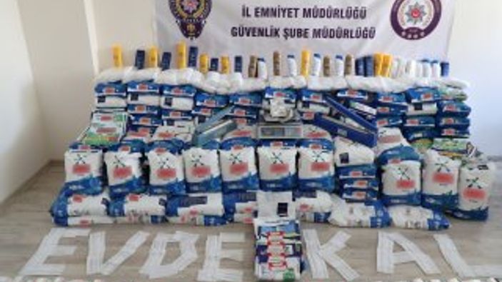 Metruk gecekondu ve önünde bulunan kamyonette yapılan armalarda çeşitli markalarda toplam 192 adet bin 514 kg imitasyon / sahte toz deterjan, çeşitli markalarda toplam 32 adet 160 lt imitasyon / sahte şampuan, üzerinde üretim yeri seri numarası bulunmayan beyaz şeffaf poşet içerisinde bin 300 adet maske, 83 adet farklı markaların boş deterjan paketi, ambalaj poşetlerinin ağzını yapıştırmak için kullanılan 2 adet makine ve tartı, üzerinde çeşitli çay markalarının bulunduğu rulo halinde beyaz renkte fosforlu 805 adet bandrol ile 14 adet bir markaya ait yapıştırma sticker bulundu.