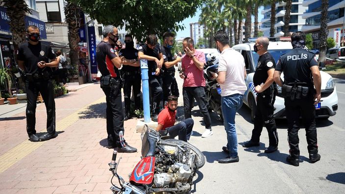 Antalya'nın Muratpaşa ilçesine bağlı Cebesoy Caddesi'nde devriye gezen yunus ekiplleri, plakasız motosikletle gezinen sürücüye 'dur' ihtarında bulundu.