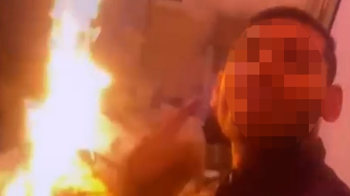 'Hadi polis çağır' ve 'İyi bak eve şimdi yakacağım' notlarıyla evi dağıttığı fotoğrafları paylaşan S.Ö.'nün, "Evi yakacağım. Gördün mü evi? Bir tane eşya koymayacağım bu evde" dedikten sonra eşyaları ateşe verdiği, sonra da "Vallahi çatır çatır da yanıyor" dediği duyuldu.