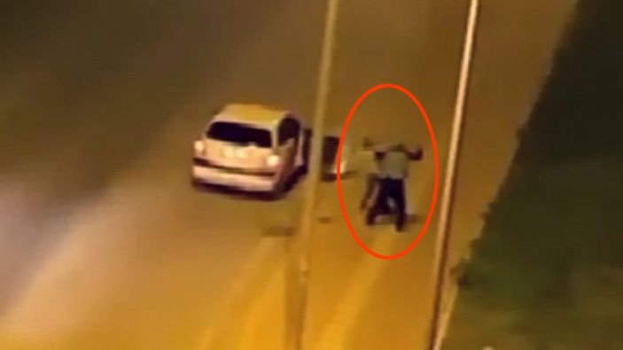 Görüntülere göre, araçtan inen bir kadın ile bir erkek tartışmaya başlıyor. Kadın öfkeyle üzerine yürüdüğü erkeği, tartaklayıp, tokatlıyor.