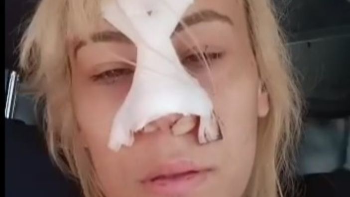 Burnumda kayma oluşmuş, çok şükür kırık yok. İki gün tampon takılı kaldı. Bugün çıkarttık, darp raporu aldık ve şahıs hakkında şikayetçi olduk. Arkadaşımla rahat bir şekilde dolaşamadık. Tek amacımız salıncakta sallanıp biraz sonra evimize gitmekti. Biz kız kıza rahat bir şekilde gezemeyecek miyiz? Bizi rahatsız ediyorlar, istediği cevabı alamayınca darbediyorlar."