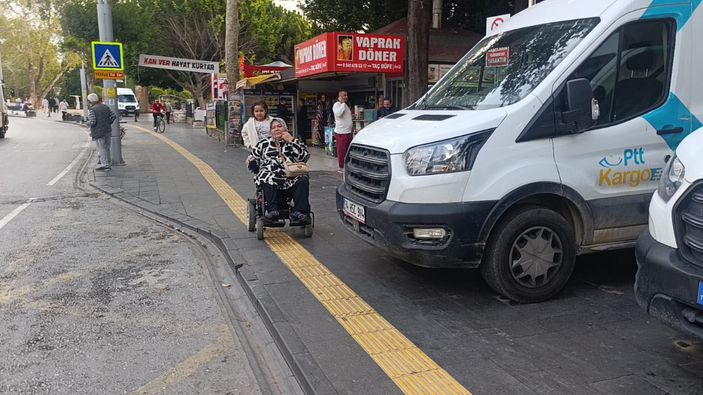 Vatandaşların tepkisi üzerine kaldırıma park eden PTT minibüsü, yarım metre geri çekildi. Böylece kaldırımın bir bölümü açılarak engelli vatandaşın ve diğer yayaların geçişine olanak sağlandı.