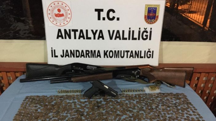 Jandarma, sikkelere el koyarken yaptıkları aramalarda ise ruhsatsız 3 av tüfeği ile 1 tabanca ve bu tabancaya ait 47 adet mermi ele bulundu.