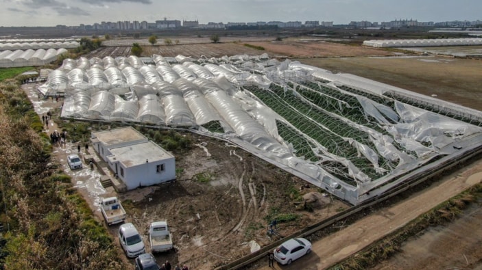 Demirleri ve naylonları fırlatıp atan hortum, seralardaki domates, biber ve patlıcanlara da büyük zarar verdi.
