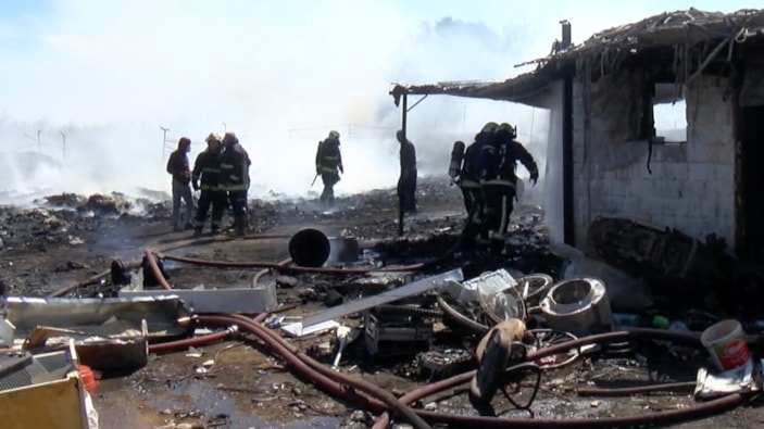 Rüzgarın da etkisiyle deponun bahçesinde yer alan hurda malzemeler yanarken, deponun yan kısmındaki bir sera ise kısmen zarar gördü.