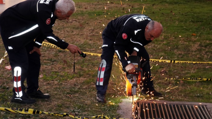 İhbarla bölgeye ekipler sevk edildi. Adrese gelen itfaiye erleri, mazgalı keserek kanalizasyon hattına girdi.