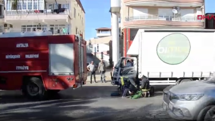 Serik ilçesinde iki kamyonun çarpıştığı kazada sıkışan sürücü, itfaiyenin çalışması sonucu kurtarıldı.
