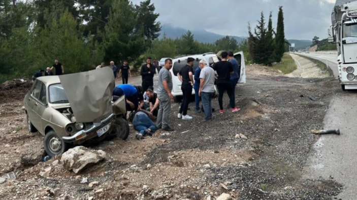 Kazada ağır yaralanan sürücüye ilk müdahaleyi yoldan geçen diğer sürücüler yaptı.