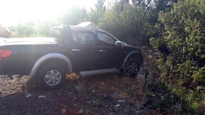 Şüpheli siyah kamyonet. ilçeye bağlı Çıplaklı Mahallesi TOKİ yerleşkesi yanındaki çalılık alanda, üzeri bezle örtülü olarak terk edilmiş buldu.