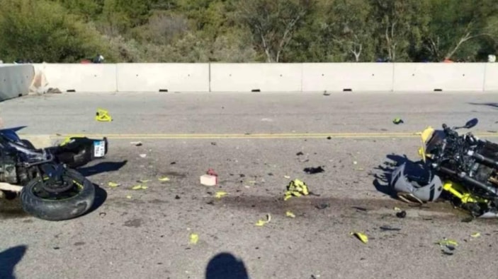 Hızlandıkça hızlanan gençlerin kullandığı motosikletler, kontrolden çıkarak pistin kapalı tarafındaki beton bariyerlere çarptı.