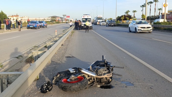 Antalya'nın Manavgat ilçesine bağlı D-400 Karayolu Ilıca Mahallesi mevkiinde Serik yönüne seyreden Berkay Mehmet Gülaydın'ın kullandığı motosiklet, sürücüsünün direksiyon hakimiyetini kaybetmesi sonucu yolun sağındaki çelik bariyerlere çarptı.