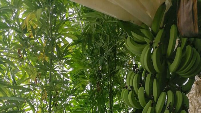 Muz serasında Hint keneviri yetiştirildiği bilgi üzerine düzenlenen operasyonda, 41 kök Hint kenevirinin yanı sıra çok sayıda uyuşturucu madde ile ruhsatsız pompalı tüfek ele geçirildi.
