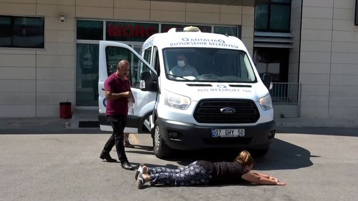 Oğlunun cenazesi alındığı sırada gözyaşı döken Esra Kibrit, önce morgun kapısı önüne, ardından cenaze aracının önüne yattı.