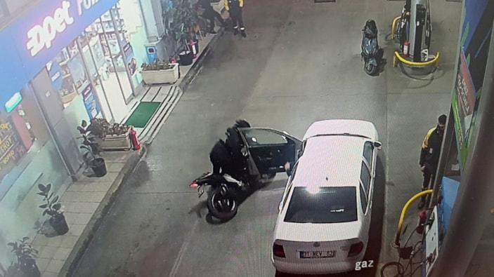 İstasyona gelen Emir Mert E.'nin kullandığı motosiklet, istasyonda yakıt almak için bekleyen Murat K.'nın kullandığı otomobilin kontrolsüz bir şekilde açılan kapısına çarptı.