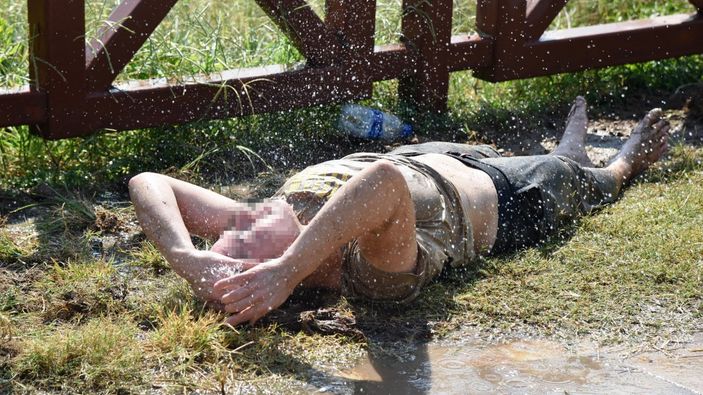 Kulağına ve saçının arasına kum gittiğini söyleyen Melek E., çimlerin üzerine yeniden uzandı.
