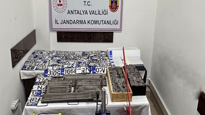 Antalya İl Jandarma Komutanlığı ekiplerince resmi belgede sahtecilik ve nitelikli dolandırıcılık suçlarına yönelik yapılan çalışmalarda, A.U. ve S.Y.K. isimli şahısların Kepez ilçesindeki evlerinin bodrum katına sahte plaka imalathanesi kurarak, suçta kullanılmak üzere sahte plaka bastıkları ve bu plakaların satışını yaptıkları tespit edildi.