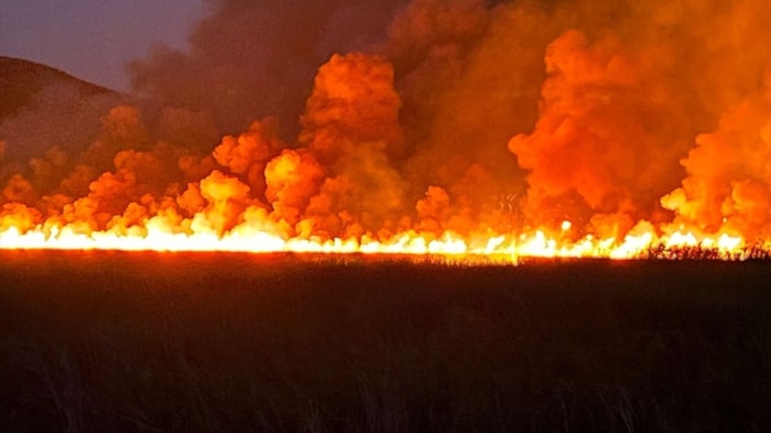 Sazlık alanın bataklık olması nedeniyle müdahaleyi güçlükle yapan ekipler, yangını kontrol altına alma çalışmalarını sürdürüyor.