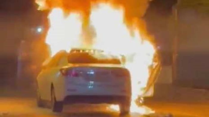 Araç sürücüsünün çabası yetersiz kalırken, otomobil kısa sürede alev topuna döndü.
