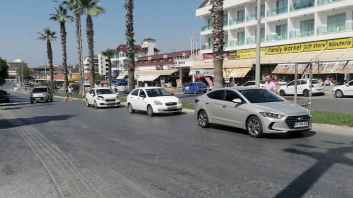 Manavgat ilçesinde aracıyla seyir halinde olan Şirin Sümer, yaya geçidinden geçen turistlere yol vermek için durdu.