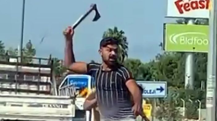 Kamyon sürücüsü eline balta, otomobil sürücüsü ise döner bıçağı aldı. Bu sırada kucağında bebek olan kadın, kamyonet sürücüsünü sakinleştirmeye çalıştı. Kadın, genci sakinleştirirken elini yüzüne götürüp feryat ettikten sonra otomobil sürücüsüne dönerek bir şeyler söylemeye başladı. Bir süre sonra iki sürücü, araçlarına binerek yollarına devam etti.
