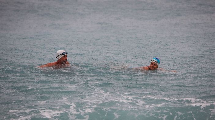 2 çocuk, 3 torun sahibi Fehmi Serinker ise "Her gün denize giriyoruz. Yağmur, çamur fark etmiyor. Bugün Asuman Hanım için girdik." dedi.