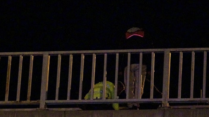 Kız arkadaşı ile yaşadığı sorun nedeniyle üst geçide çıktığı öğrenilen genci, polis ekipleri ikna etmek için uzun süre çaba sarf etti.