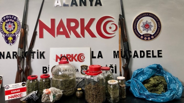 Yapılan aramalarda, 10 kilo 711 gram skank, 7 kilo 100 gram esrar, 4 kilo 679 gram eroin, 3 kilo 186 gram metamfetamin, 2 kilo 794 gram kokain, 3 bin 322 sentetik hap, 142 ekstazi, 1943 A4 maddesi, 13 kök kenevir bitkisi, 37 hassas terazi, 22 ruhsatsız silah ve bunlara ait 294 fişek ile bir miktar para ele geçirildi.