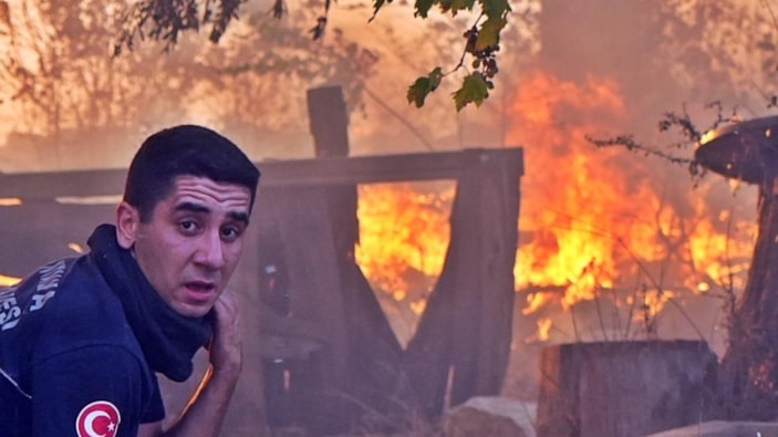 Havanın kararmasıyla birlikte gece görüşlü helikopterler, karadan söndürme işlemlerini sürdüren ekiplere destek verdi.