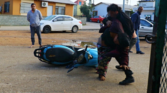 Genç kadını motosikletten indiren yere yatıran şahıs eşini darp etmeye başladı.