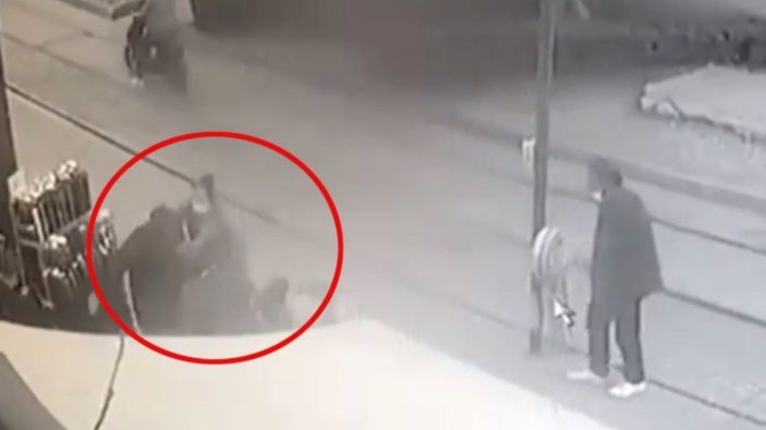 Yaşanan kavga anları çevredeki bir iş yerinin güvenlik kamerasına yansıdı.
