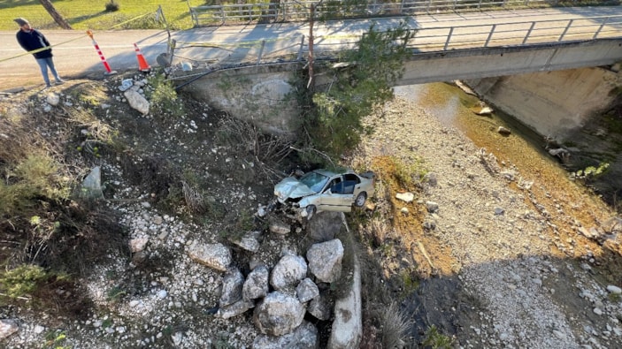 Antalya'nın Kaş ilçesine doğru giden Yasin Erdoğan yönetimindeki otomobil, sürücüsünün direksiyon kontrolünü kaybetmesi sonucu, köprünün bariyerlerine çarparak dereye uçtu.