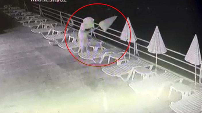Konserve Halk Plajı'na giden kimliği belirsiz kişi, yüzünü gizledi, dans etti. Şüpheli en sonunda da onlarca plaj şemsiyesini denize attı. Şaşkınlık yaratan olay, incelemeye alındı.
