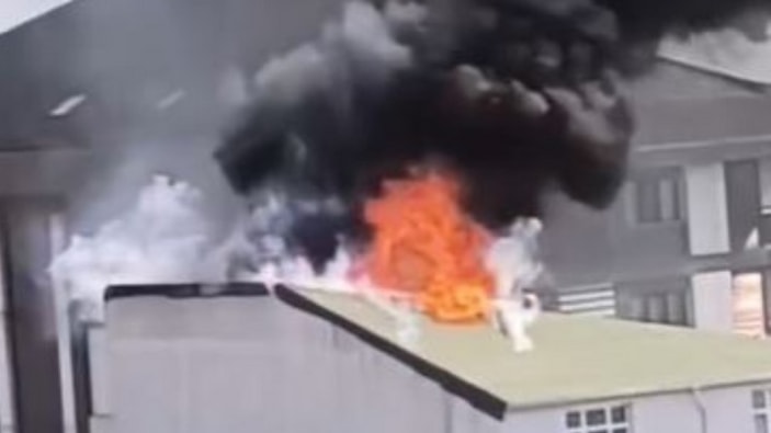 İstanbul Arnavutköy’de 5 katlı bir binanın çatısında çıkan yangın, itfaiye ekiplerinin müdahalesiyle söndürüldü. Soğutma çalışmaları havadan görüntülendi.