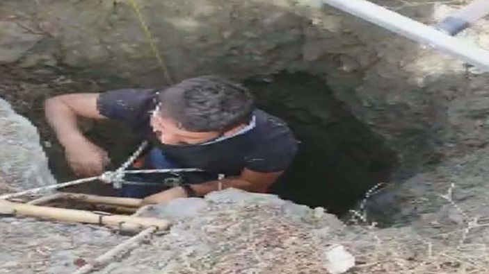 Çetin fotoğraf çekerken, göl kenarına defineciler tarafından kazılmış 10 metre derinliğindeki kuyuya düştü.