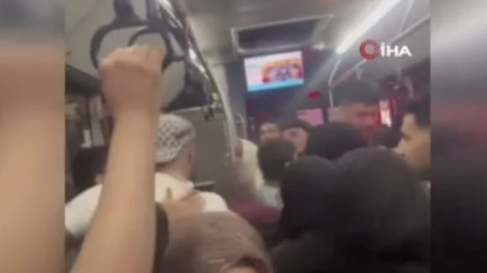 Görüntülerde, şahısların birbirine saldırdığı, diğer yolcuların ise araya girerek kavgayı ayırmaya çalıştığı görüldü.