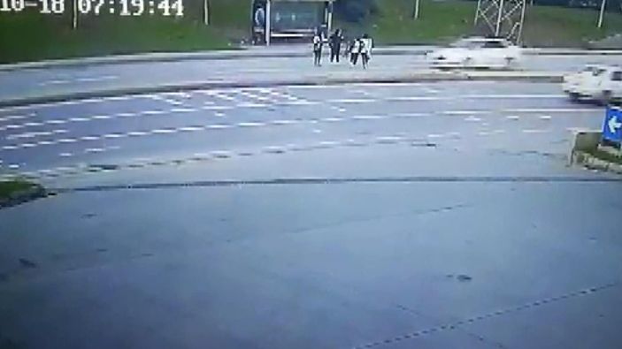 Bir anlık tereddüt yaşayan genç kızlardan ikisi, hızlarını artırarak yolun karşısına geçmeye çalıştı, ancak başarılı olamadı.