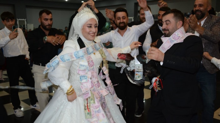Genellikle altın ve para takılarak yapılan takı töreninde bu kez damat Hasan Badur, beklenmedik bir sürprizle karşılaştı.