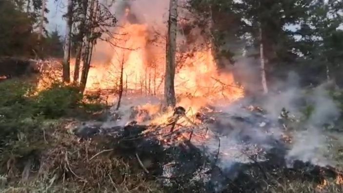 Rüzgarın da etkisi ile alevler, geniş bir alana yayıldı. Çam ve ladin ağaçları alev alev yandı.