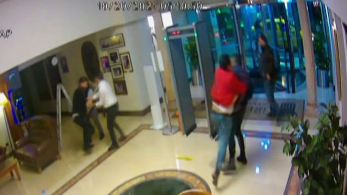 Ataşehir'de, barda başlayıp lobide biten kavgada çenesi kırıldı VİDEO