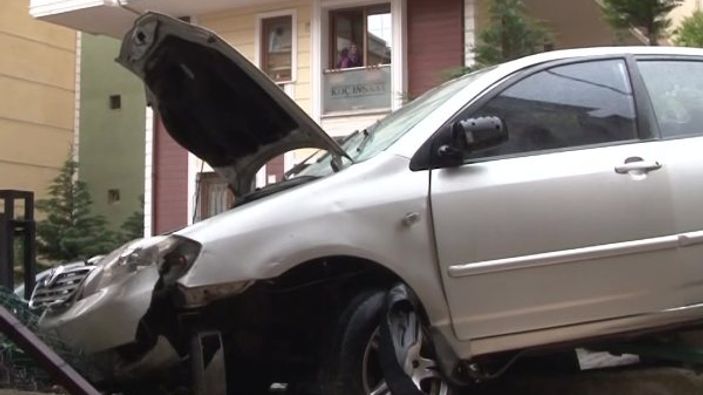 Kontrolden çıkan araç önce bir otomobile çarptı, ardından ise apartman bahçesine girdi.
