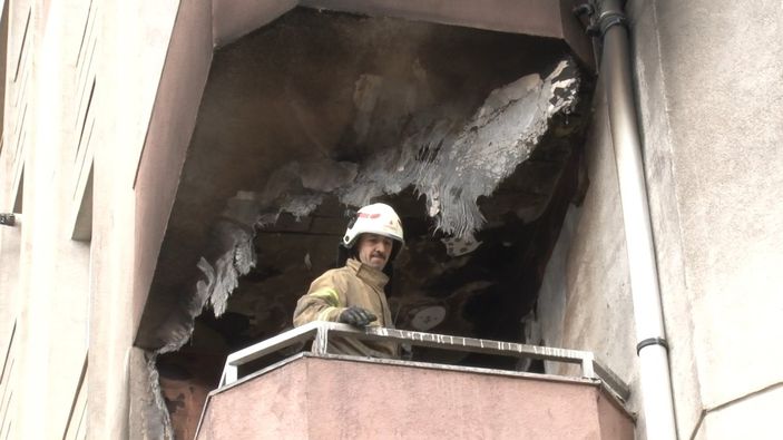 Öte yandan yangınla birlikte binada panik oluşurken üst katlarda oturan ve hamile olduğu belirtilen genç kadın, komşusuyla birlikte yangın merdiveninden aşağı inmeye çalıştı.