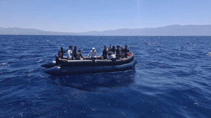 Aydın'ın Kuşadası ilçesi açıklarında bir grup düzensiz göçmen, lastik bota binerek ülkeden kaçmaya çalıştı.