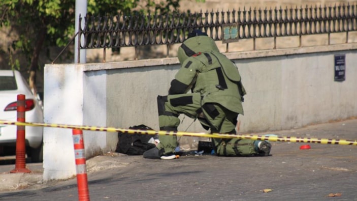 Özel kıyafetli bomba imha uzmanı tarafından yerleştirilen fünye ile çanta uzaktan patlatıldı.