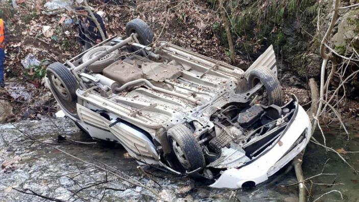 Dere yatağına yuvarlandığı belirlenen araçtaki Demircan ve Ayhan için sağlık ekibi çağrıldı.